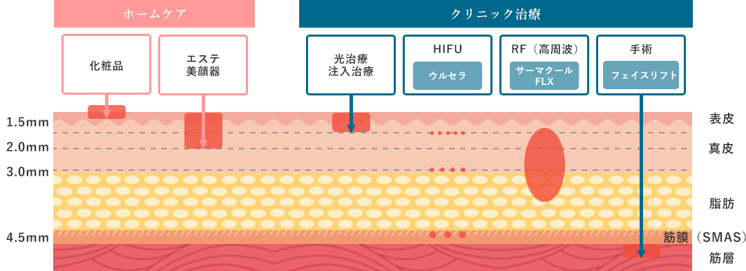 治療を考えるに当たり、その治療がどの深さをケアしているのかを考えることが最も重要となります。